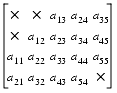An unsymmetric sparse matrix does not have a(i, j) = a(j, i) for all i and j. The structure of the matrix does not have an apparent pattern. When solving an unsymmetric system, the entire matrix must be passed to the solver routines. An example of an unsymmetric matrix is shown below.