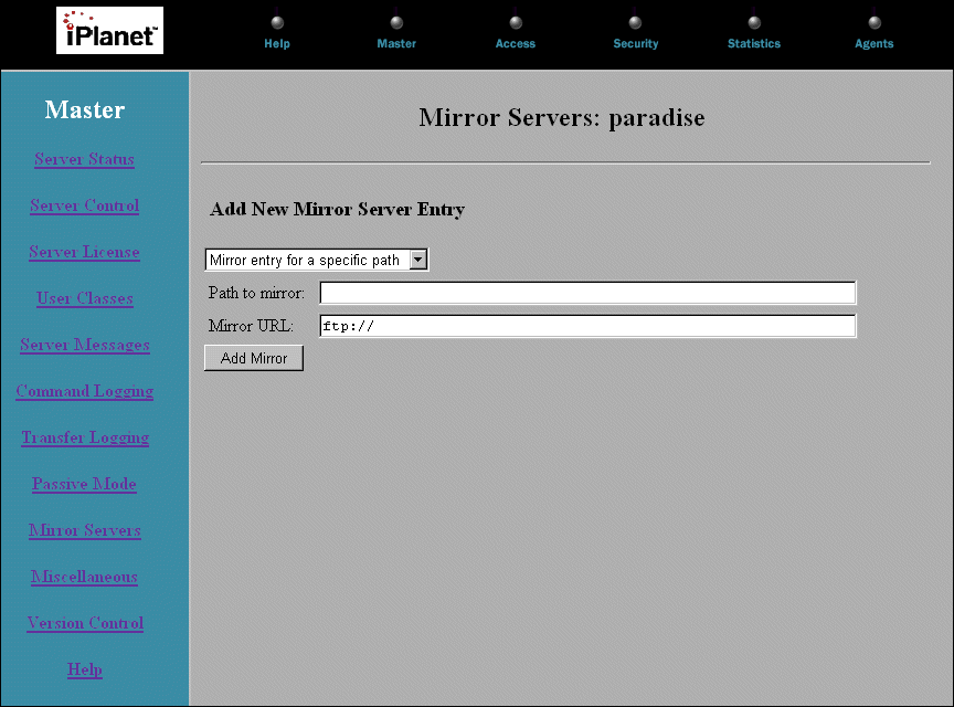 Adding a Mirror Server Entry