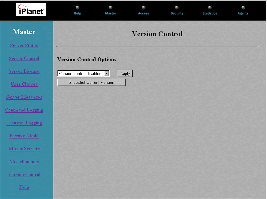 The Version Control page is where you enable and disable version control, take snapshots of the current system configuration, and revert to an old configuration.