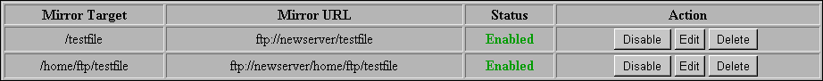 To enable or disable a mirror Server entry, click Enable or Disable next to the desired entry.