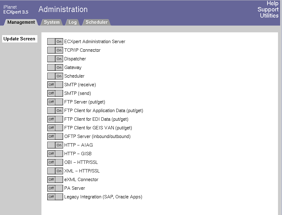 Figure 1-5    Initial Server Administrative Interface screen (ECXpert Administration Server is On) ![]()