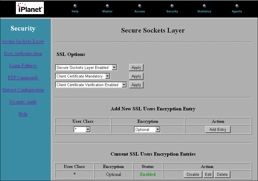 Figure 1-2    Default Secure Socket Layer Settings ![]()