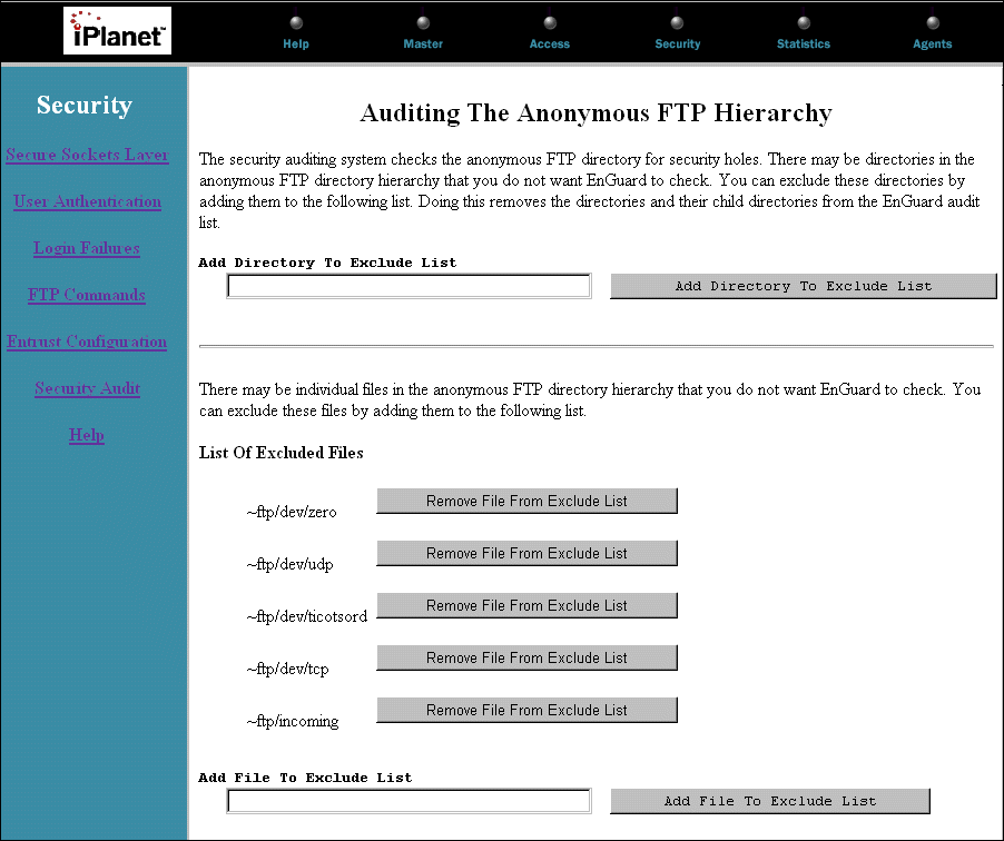 To access the Auditing The Anonymous FTP Hierarchy page, click Configure Security Checking Of Anonymous FTP Hierarchy.