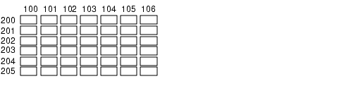 2 次元の矩形配列の断面の例を示します。ここでは、刻み値が省略され、デフォルト値の 1 が使用されます。