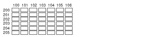 print arr(201:203, 101:105:2)刻み値として 2 を指定すると、各行を構成する要素が 1 つおきに出力されます。