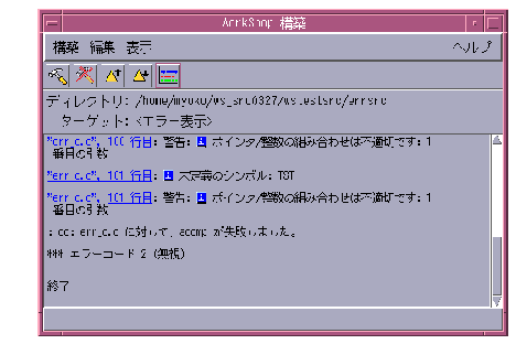 注 - Sun WorkShop から利用できるものと同じ構築ツールが起動されます。Sun WorkShop のメインウィンドウから「ウィンドウ」「構築ウィンドウの表示」を選択して起動できます。