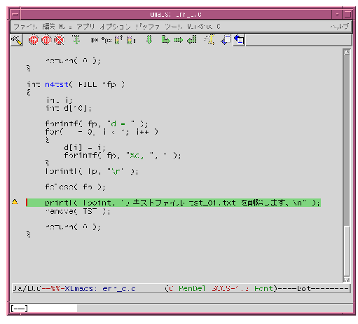 図 9-4 エラーが存在するソースファイルをテキストエディタのウィンドウに表示エラーの修正