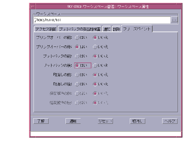 図 8-5 「ワークスペースの属性」ダイアログボックスの「フリーズポイント」タブフリーズポイントツールによって、