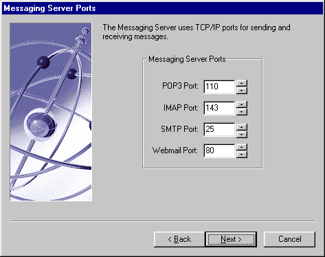 POP3、IMAP、SMTP、および Messenger Express (Web メール) の TCP/IP ポート番号