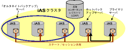 分散データ同期により、プロセスでのクラスタ管理とデータ同期が提供され iPlanet Application Server のスケーラビリティを補助します。クラスタは iPlanet Application Server サーバのセットで、セッション (クライアントの対話情報) とステート (データベースのオープンデータ、変数) のデータを 1 つのソースで共有します。クラスタは共有セッションとステートデータの統合を管理します。クラスタは、アプリケーションがセッションとステートデータを共有する必要があっても iPlanet Application Server を実行する必要がない場合に使います。