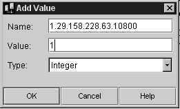 「入力」ドロップダウンリストから「Integer」を選択し、「OK」をクリックして、エントリを iPlanet レジストリに登録します。