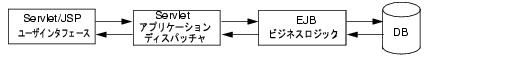 EJB を使うアプリケーションを作成する際の課題は、アプリケーションを Servlet、JSP、セッション Beans、エンティティ Beans にどのように分割するかを決めることです。