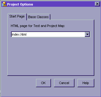 iPlanet Application Builder allows you to test a project before deploying it. Each time you successfully test your project, iPlanet Application Builder launches your application from a specified start page. If your project includes an index.html page, it is automatically designated the start page until you specify otherwise. You may want to specify a start page other than index.html if, for example, you want to test only a portion of your project. The page you specify applies only to testing. For more information, see Testing Applications in the chapter titled "Compiling, Testing, and Debugging Applications."To set the start page, click the Start Page tab, then choose an HTML page as shown in the following figure: