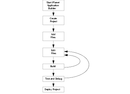 The following flowchart shows the basic steps for developing an iPlanet Application Server application: