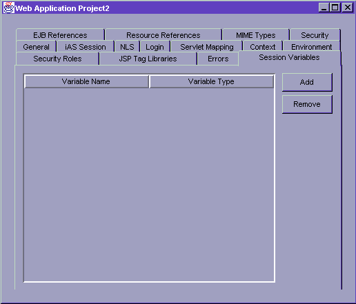 iPlanet Application Builder also helps you to create and manage session variables for your application.Session variables are used by many servlets in an application to store and access data that is shared throughout the application. They behave much like global variables do for an application; if you think of servlets as separate procedures and functions for an application, the session variables act (per user) as globally accessible data blocks that are shared across all servlets.