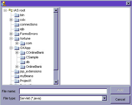 Select the servlet file, either by navigating or by entering the file name, and click Add.