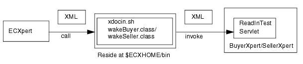 The wakeBuyer class wakes servlet ReadInTest in BuyerXpert/SellerXpert, at which point the xdocin.sh script is set up as a service in ECXpert.