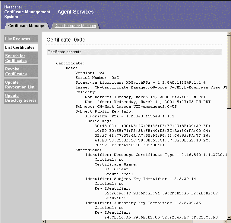If you want to add extensions other than Netscape cert type extensions, you can paste a base-64 encoding of the extension in the "Additional Extensions" field.
