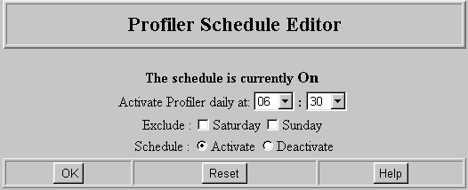 The Profiler Schedule Editor allows you to schedule the Profiler and provides status for the Profiler.