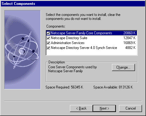 Figure 2.2    The Setup Program displays the servers and components available to you.