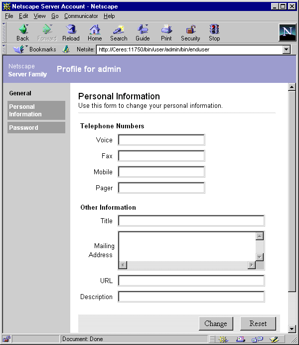 In the Administration page, click Edit User Profile. Figure 4.2    End users can modify, but not create, a user entry.