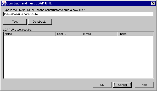 In the Construct LDAP URL dialog box, provide search criteria, and then click OK