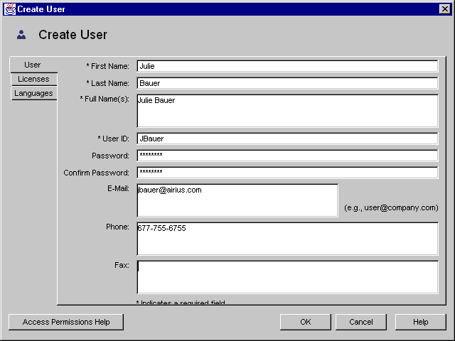 User ID. When you enter a first and last name, the user ID is automatically generated. You can replace this user ID with one of your choosing. The user ID must be unique from all other user ID's in the directory.