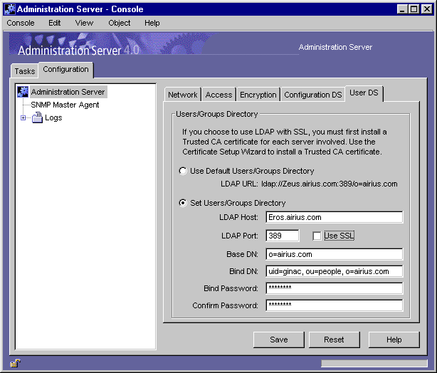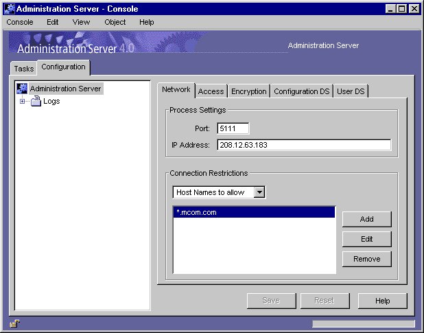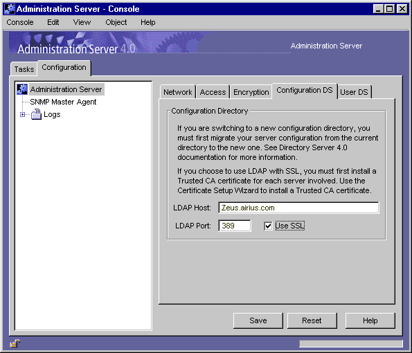 In Netscape Console, in the navigation tree, select the Administration Server instance you want to use SSL encryption with.