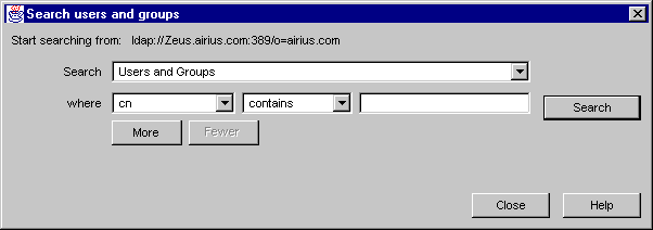 Users and Groups Search Directory. Displays the URL of the current user directory. When you perform a search, Netscape Console locates users and groups in this directory.