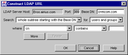 In the Construct LDAP URL dialog box, provide search criteria, and then click OK