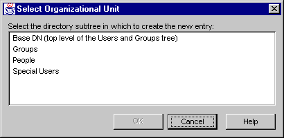 In the Select Organizational Unit window, select the directory subtree (ou) to which the group will belong, then click OK.