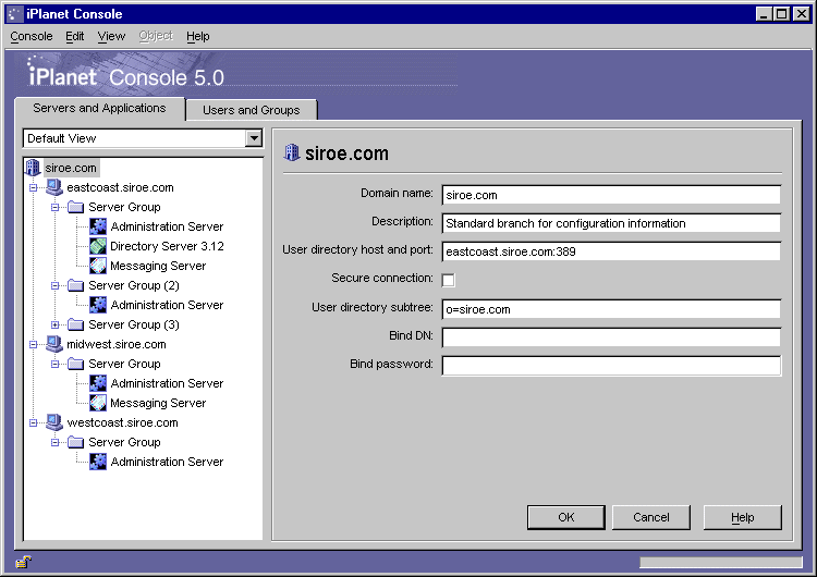 When you're installing an iPlanet server, you are prompted to specify a user directory that is associated with the administration domain in which the server will be located. By default, this association is inherited at all levels beneath the administration domain. Server groups and the individual servers within them use the same user directory as the domain.There may be times when you need to override default user directory settings at the server group or domain level. For example, you may need to change the user directory for a domain when you upgrade to a new Directory Server. Or you might want to temporarily change the user directory for a server group when you're testing a new instance of Directory Server and don't want to use your existing user directory with it.