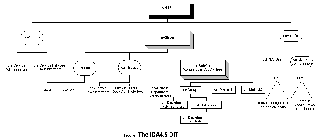 Figure B-2    Default DIT in Delegated Administrator 4.5 ![]()