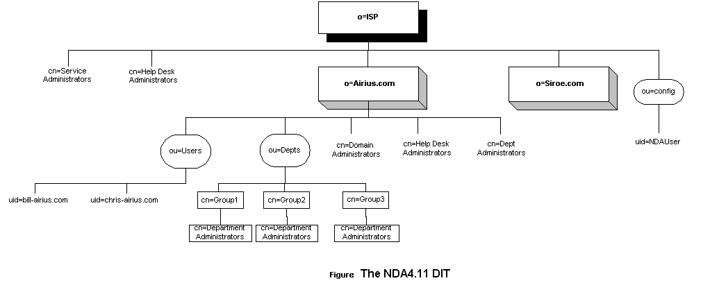 Figure B-1    Default DIT used in Delegated Adminstrator 4.11 ![]()