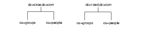 You can create both root and sub suffixes to organize the contents of your directory tree. A root suffix is the parent of a sub suffix. It can be part of a larger tree you have designed for your directory server. A sub suffix is a branch underneath a root suffix. The data for root and sub suffixes are contained by databases.Your directory might contain more than one root suffix. For example, an ISP might host several websites, one for siroe.com and one for i-zed.com. The ISP would create two root suffixes, one corresponding to the dc=siroe,dc=com naming context and one corresponding to the dc=i-zed,dc=com naming context. The directory tree appears as follows: