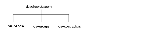 cn: dc=siroe,dc=comTo create a sub suffix for groups under this root suffix, you would do an ldapmodify operation to add the following entry: