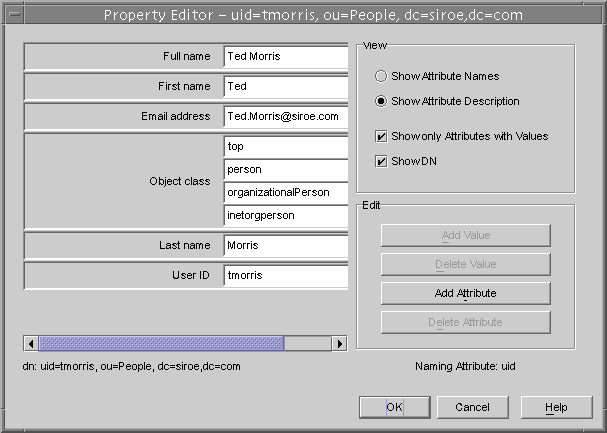 - The Property Editor is displayed. Refer to "Modifying Directory Entries" for information on using the Property Editor.
