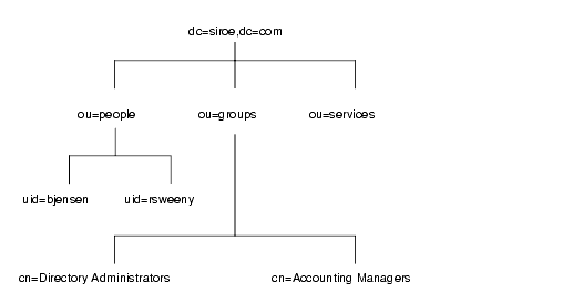 You can build on the default directory tree to add any data relevant to your directory installation. An example of a directory tree for siroe.com Corporation follows: