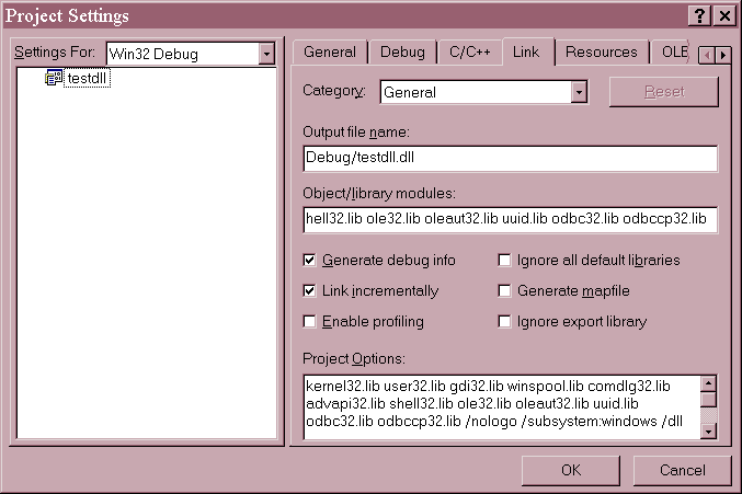 Choose Settings from the Project menu. Click the Link tab in the Project
