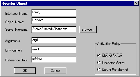NOTE: If an object implementation is started manually as a persistent server, it does not need to be registered with the OAD.Example: