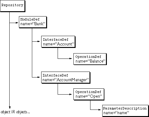 Figure 7.1 IR object hierarchy for the Bank.idl specification.