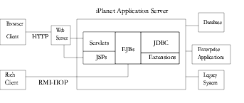 The Rich Client is a stand-alone Java program that can directly access EJBs deployed on iAS. Traditionally, clients communicated with iAS through the web-path, i.e. by speaking HTTP to server components such as JSPs and Servlets which in turn had access to EJBs within the context of the server. The J2EE v1.2 specification, however, requires that stand-alone clients be able to talk to iAS using the RMI-IIOP standard. Chapter 9 of the J2EE v1.2 specification also requires that these stand-alone clients operate within the context of an Application Client Container (ACC) that isolates server-specific issues, leaving the clients completely portable. Through its Rich Client infrastructure, iAS allows Java clients to directly access EJBs on iAS. These clients could operate within an ACC that ships with iAS as required by the J2EE ACC specification or more straight forward direct access (non ACC path) the way Java programmers are used to writing them.The diagram below is a schematic representation of the iAS architecture and illustrates the difference between the Rich Client and web paths. While browser clients communicate with iAS using HTTP through a Web Server, Rich Clients circumvent the Web Server and directly access EJBs as RMI-IIOP clients.