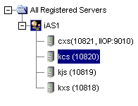 The Java Server (KJS) and C++ Server (KCS) processes are responsible for hosting application elements, depending on the language in which the element is written. The Java Server hosts application components written in Java, and the C++ Server hosts components written in C++. In addition, the Corba Executive Server (CXS) or Bridge process allows for independent Java clients (Rich Clients) to communicate directly to Enterprise JavaBeans hosted on a Java Server. For more information about the Rich Client, see the Programmer's Guide (Java).