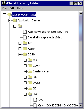 SOFTWARE\iPlanet\Application Server\6.0\CCS0\ENG