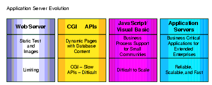 a server tier represented by a web server such as iPlanet Web Server Enterprise Edition and an application server which runs the business code such as iPlanet Application Server.