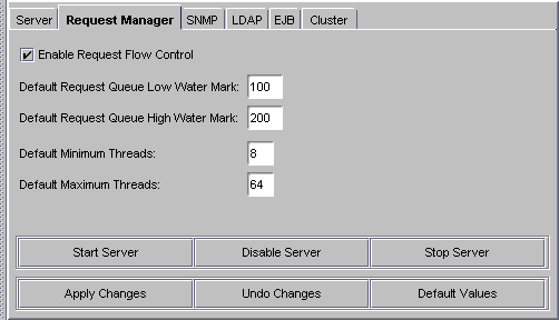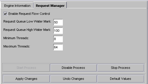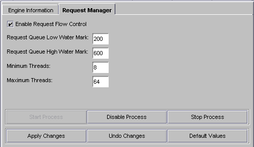 In the Request Manager box, enter the minimum number of threads available for that process.
