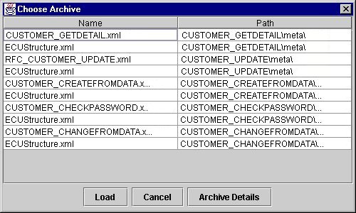 Click the Load button to load the selected archive. Click the Cancel button to return to the previous window with no changes made. Click the Archive Details button to display the XML file (see the Developer's Guide for more details).