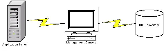 The UIF Repository stores data in XML format. The UIF is actually a consistent way to access backend data. It consists of a set of ten API calls that act as a means to communicate with the backsystem.An EJB calls for various commands/information from the backend system. This call is routed through the UIF, which serves as a translator between the backend system and the EJB. A dialog is established, an exchange of information occurs, and the dialog is concluded. See Figure 1-1 Application Model.