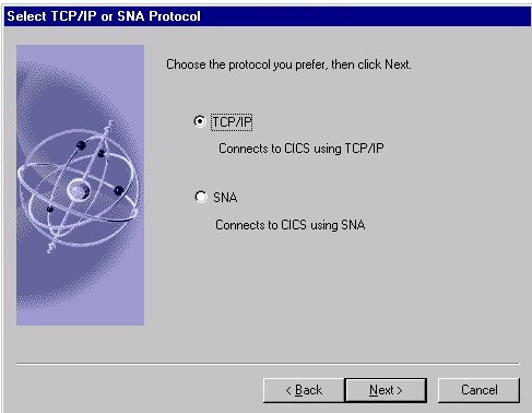 Choose the protocol you prefer in the Select TCP/IP or SNA protocol window as shown below, and then click Next.