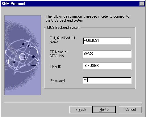 Note The following procedure starting in Step 8 is used to connect to the backend using SNA.